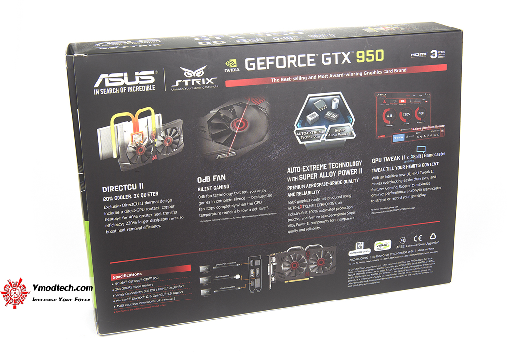 สวัสดีครับทุกๆท่านที่เยี่ยมชมเว็บไซต์ Vmodtech.com วันนี้เรามีกราฟฟิกการ์ดระดับเริ่มต้นสำหรับผู้ที่ต้องการเล่นเกมส์ดังๆให้มีภาพสวยงามแต่ยังมีงบประมาณที่จำกัดอยู่ สำหรับ NVIDIA GeForce GTX 950 นั้นเป็นรุ่นเล็กในซีรีย์ GTX 900 ที่ออกแบบมาเพื่อคอเกมส์อย่างแท้จริงครับ สำหรับวันนี้เรามีการ์ดที่ใช้ GPU GTX 950 แต่อยู่บนแบรนด์ชื่อดังในบ้านเราอย่าง ASUS GeForce GTX 950 STRIX GAMING 2GB GDDR5 เมื่อ GPU ระดับคุ้มราคามาปรับแต่งให้สวยงามอย่างมีเอกลักษณ์แบบนี้แล้ว ความน่าสนใจก็เพิ่มขึ้นอีกมากทีเดียวครับ เรามาติดตามรายละเอียดกันเลย