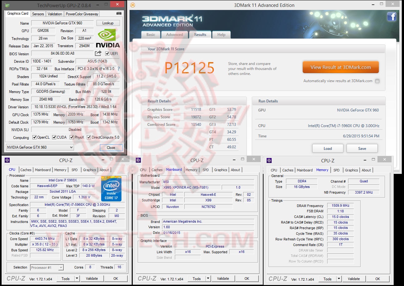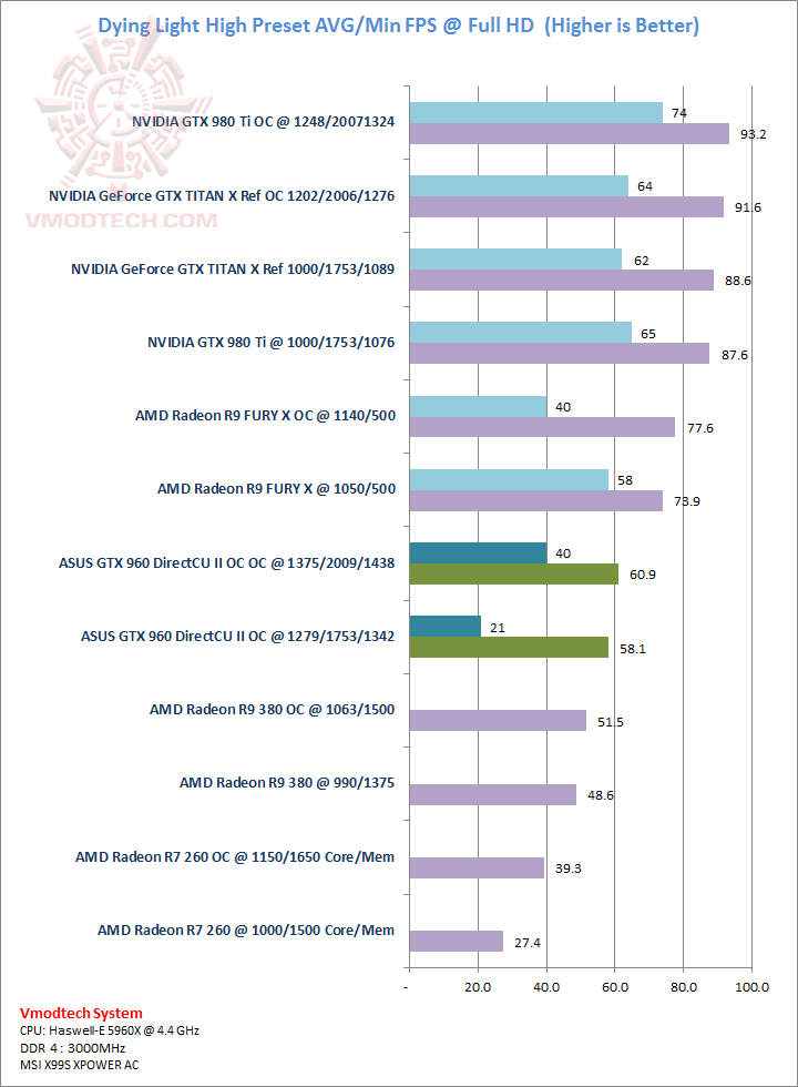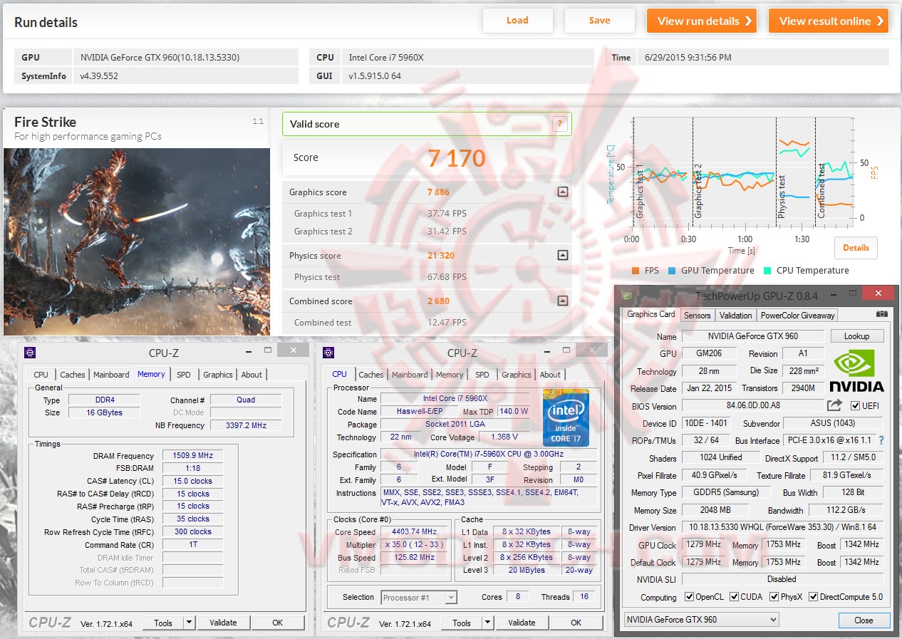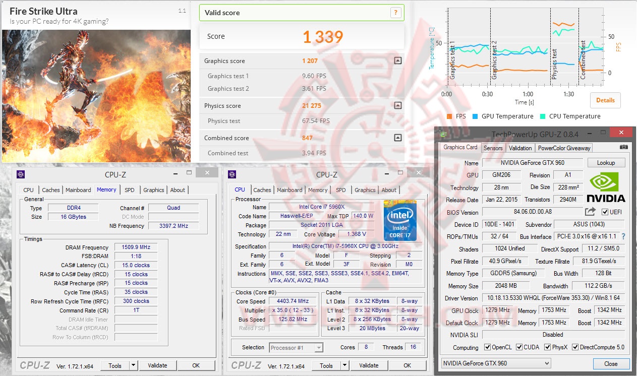 ASUS GeForce GTX 960 DirectCU II OC @ 1279/1753/1342 MHz Core/Mem/Boost