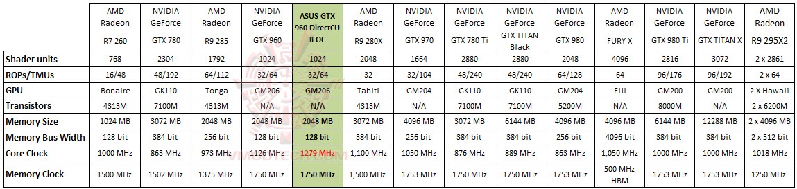 ตารางเปรียบเทียบ ASUS GeForce GTX 960 DirectCU II OC กับการ์ดในยุคปัจจุบัน