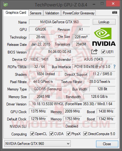 ASUS GeForce GTX 960 DirectCU II OC from GPUZ