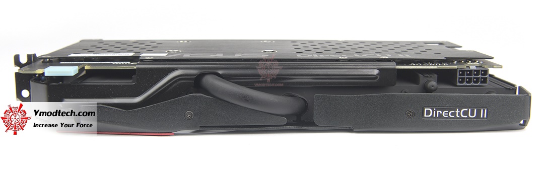 ความหนาสองสล๊อดครับ และที่ด้านข้างนี้จะเห็นฮีทไปท์ขนาดเขื่องทีเดียว ตัวการ์ดนั้นต้องการไฟจากหัวแบบ PCI ชนิดแปดพินหนึ่งหัว และตัวการ์ดสามารถต่อ SLI ได้ตามมาตรฐานครับ
