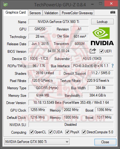 ASUS GeForce GTX 980Ti STRIX Gaming from GPUZ