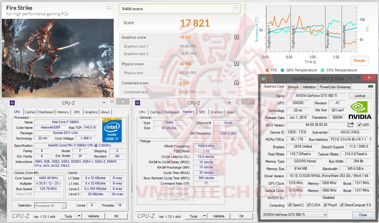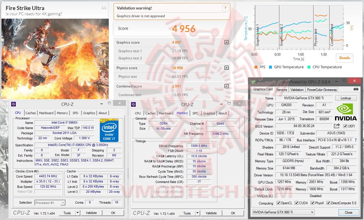 ASUS GeForce GTX 980Ti STRIX Gaming Overclock @ 1255/2002/1356 MHz Core/Mem/Boost