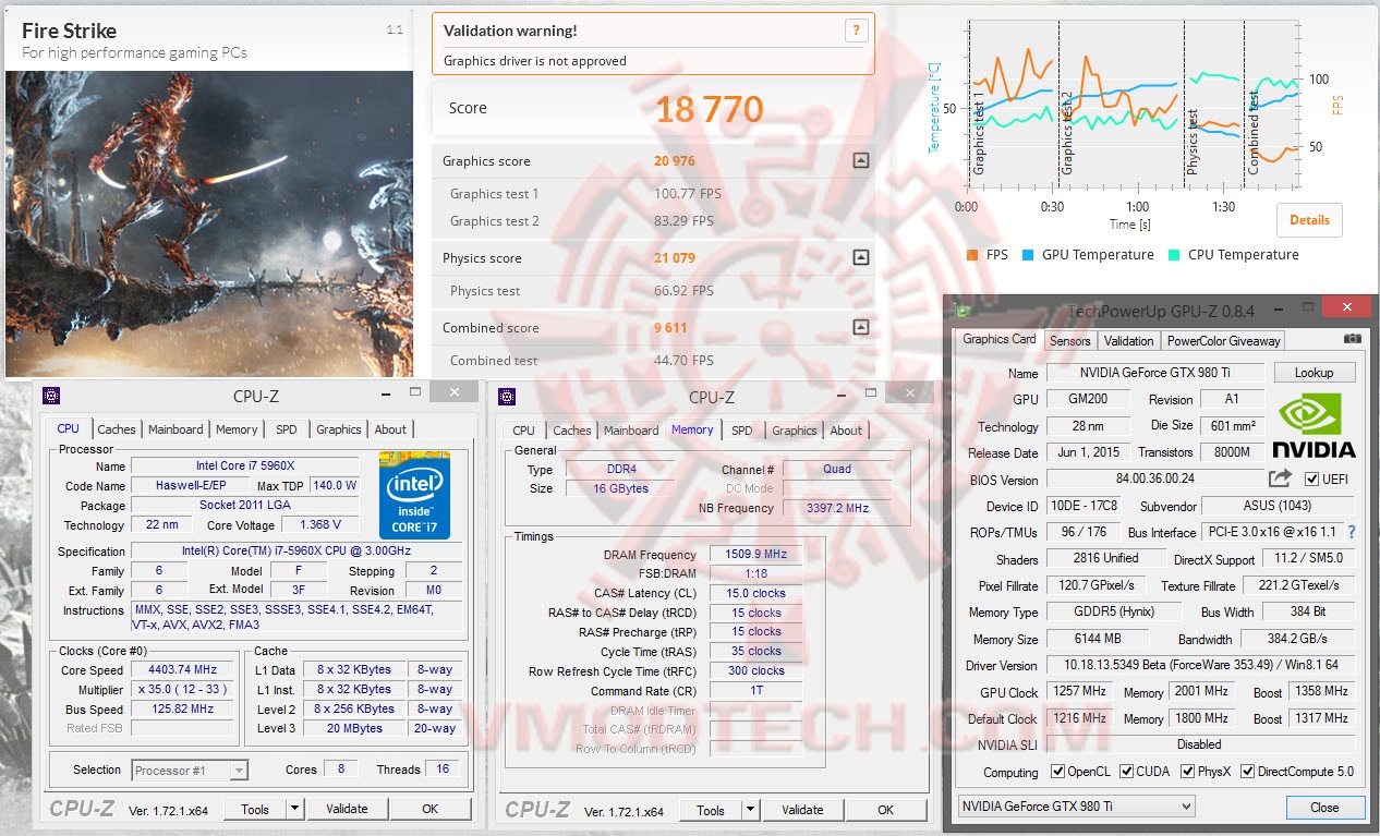 ASUS GeForce GTX 980Ti STRIX Gaming @ 1216/2002/1317 MHz Core/Mem/Boost