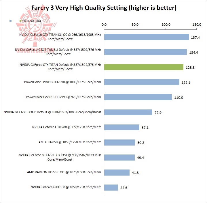 Farcry 3 ได้สบายๆด้วยการปรับ High Quality ที่เฟรมเรท 128 เฟรมต่อวินาที แซงทุกรุ่นที่มีในตลาดขณะนี้ครับ