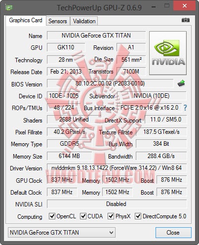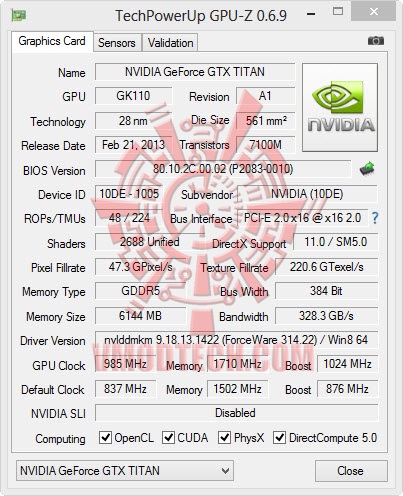 ASUS GeForce GTX TITAN 6GB GDDR5 from GPUZ
