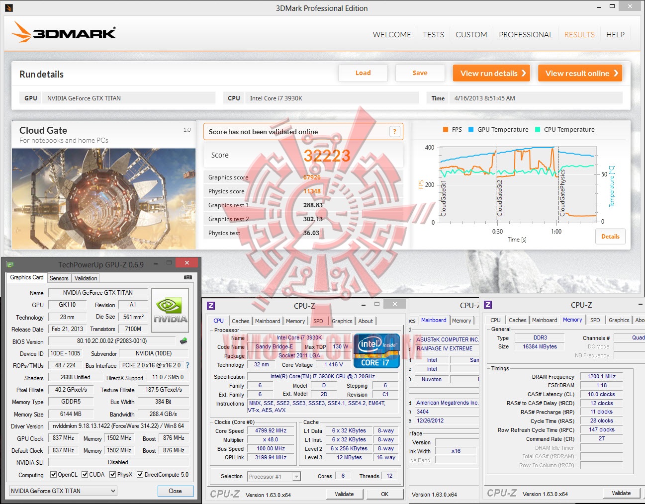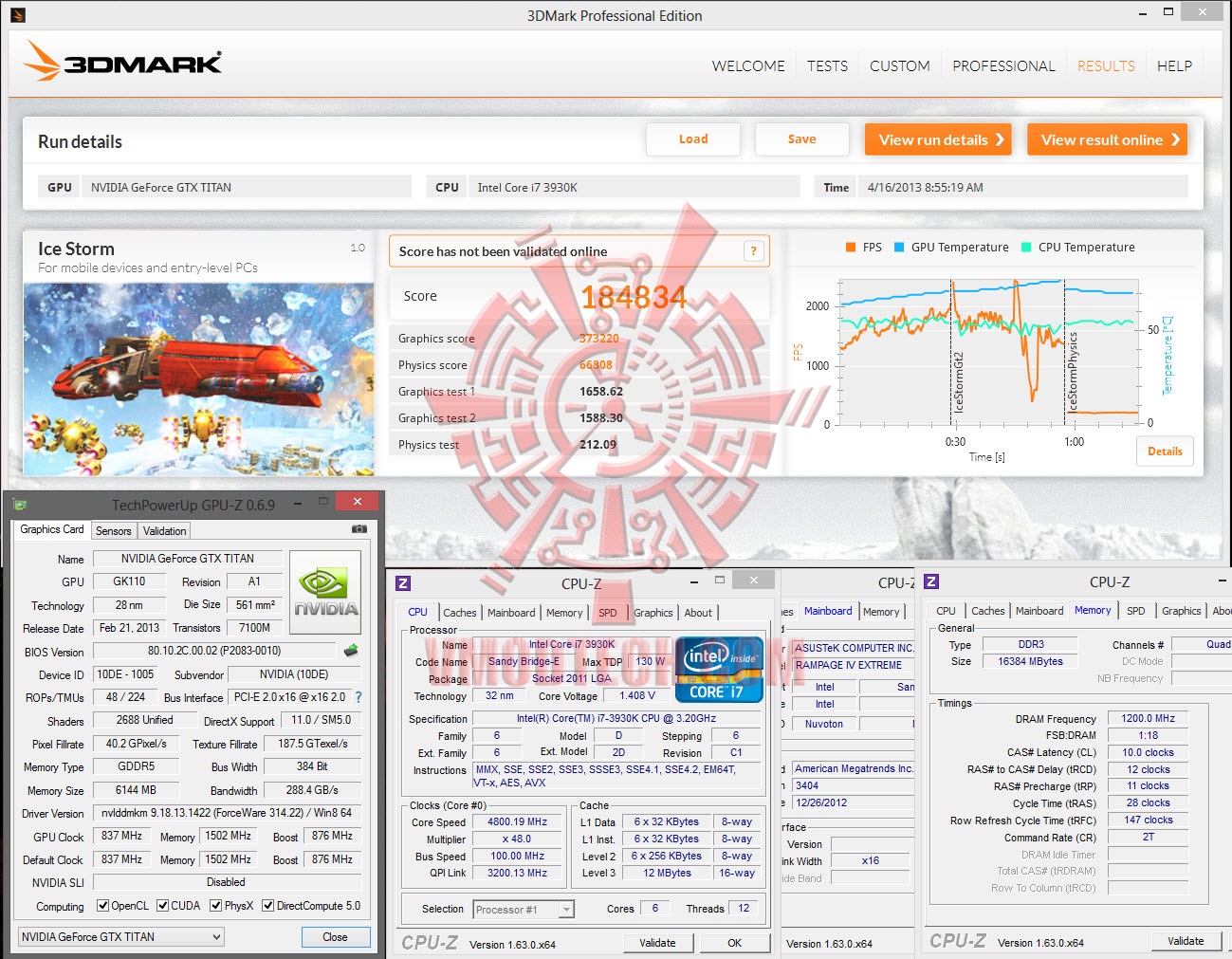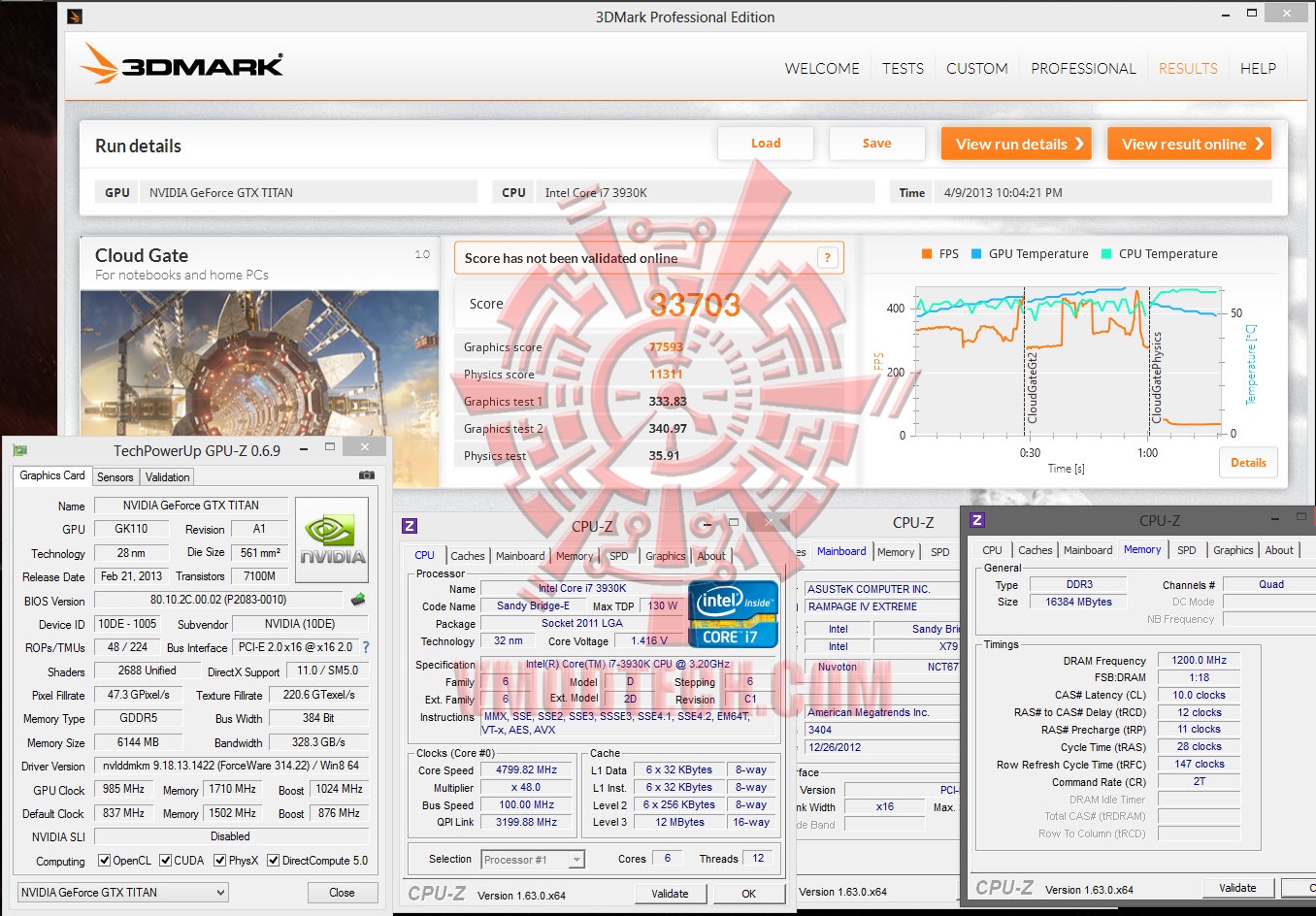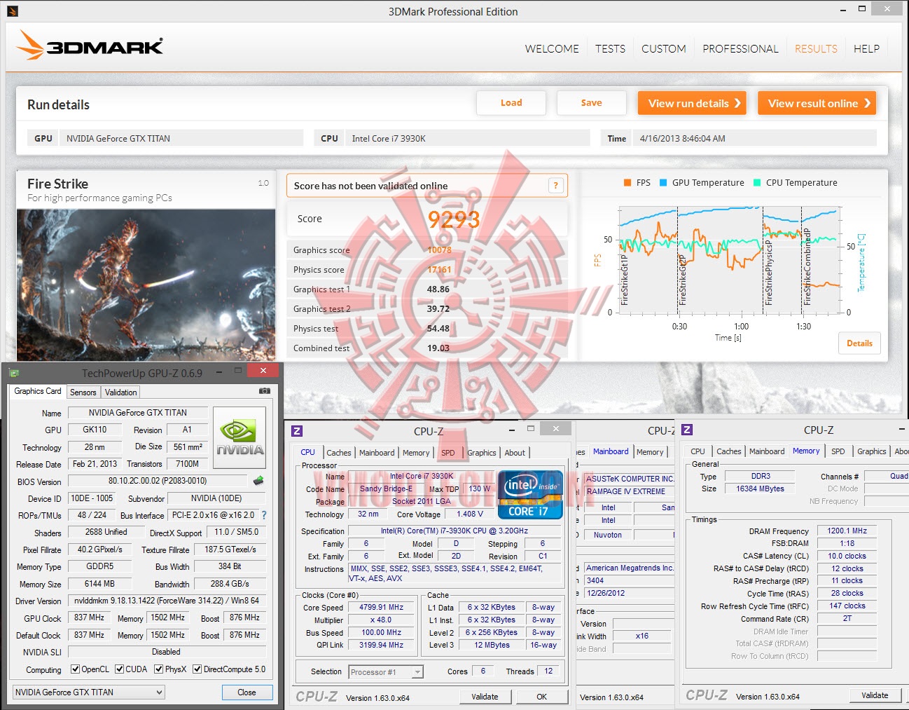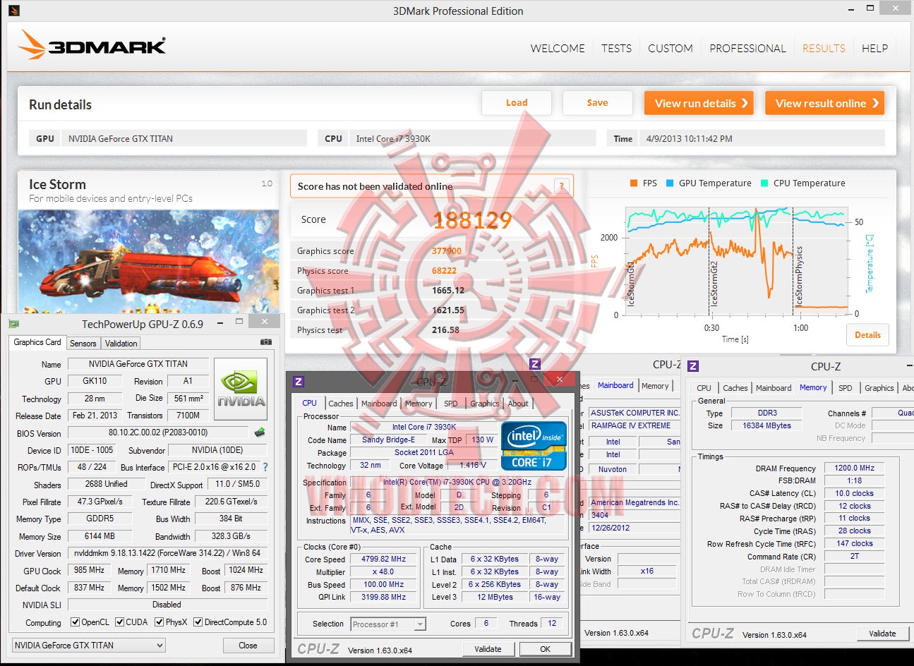 พิจารณาที่ Fire Strike ที่ว่ามหาโหดนั้น ASUS GeForce GTX TITAN ใบเดียวอัดไปเก้าพันสองเลย พอโอเวอร์คล๊อกก็ทะลุหมื่นไปเรียบร้อย