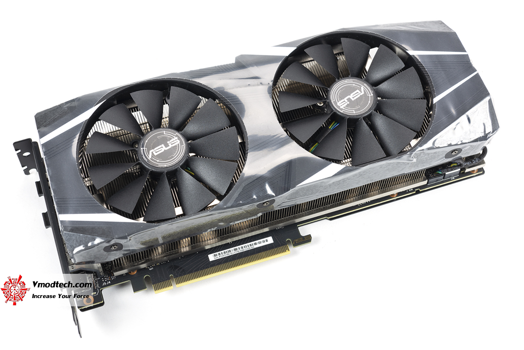 หน้าตาของ ASUS GeForce RTX 2070 DUAL นั้นสวยงามโดดเด่นด้วยฝาครอบและชุดระบายความร้อนที่ถูกผลิตขึ้นจากพลาสติกขึ้นรูปให้ความยืดหยุ่นสูง
