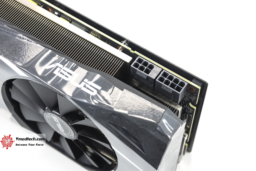 สันการ์ดนั้นจะมีโลโก้ซีรีย์ ASUS GeForce RTX ขาวเด่นชัด ตัวการ์ดจะต้องการไฟเลี้ยงจากขั้วแบบ PCIe 8 พินจำนวน 1 หัวและ หกพินอีกหนึ่งครับ