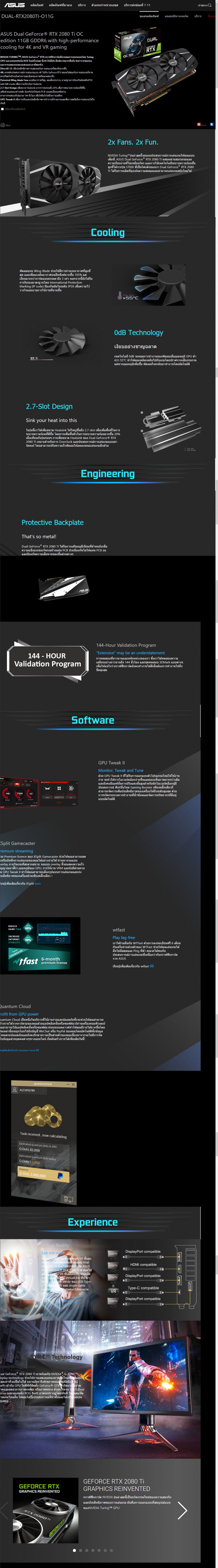สวัสดีครับ วันนี้เรามีกราฟฟิกการ์ดที่ใช้ NVIDIA GPU Turing โดยวันนี้ได้รับการ์ดเบอร์ใหญ่มาซึ่งก็คือ ASUS GeForce RTX 2080 Ti DUAL ครับ ตัวการ์ดนั้นโดดเด่นด้วยชุดระบายความร้อนที่สวยงามและมีเอกลักษณ์ของ ASUS ครับ ตัวการ์ดนั้นจะมีความเร็วเท่ากับการ์ด Founder Edition แต่จุดเด่นก็อย่างที่ได้กล่าวไปแล้วก็คือชุดระบายความร้อนนั่นเอง เรามาเริ่มทำความรู้จักการ์ดตัวนี้กันเลยครับ