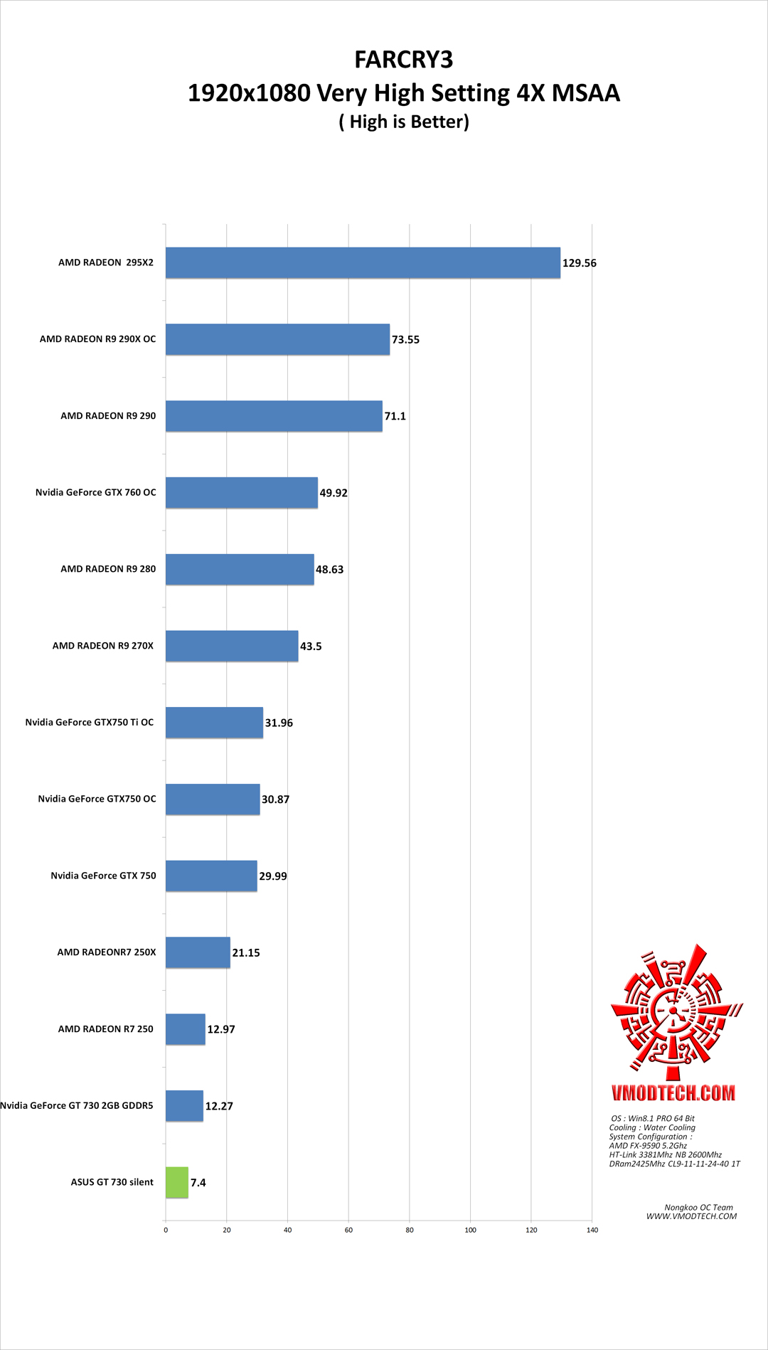 FARCRY3 ความละเอียด 1920X108 Very High MSAA 4X เฟรมเรตอยู่ที่ 7.4เฟรมเรต เฟรมเรตต่ำครับกับคอนฟิกสูงๆ ไม่เหมาะเท่าไหร่กับเกมส์กินสเปกแบบนี้