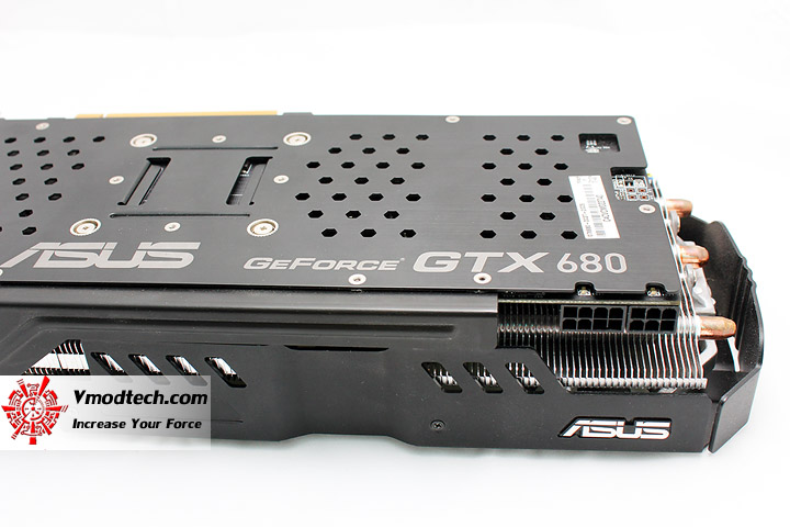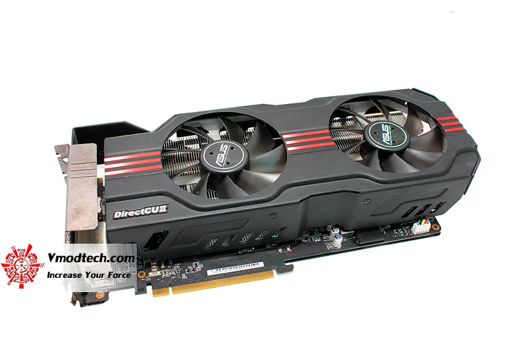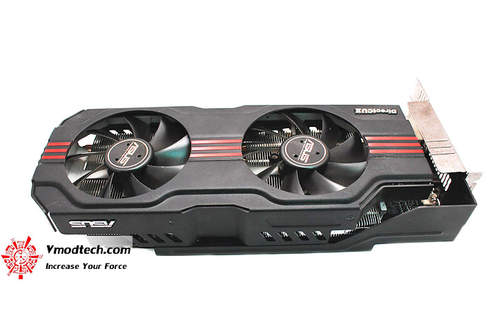 ตัวการ์ดนั้นใหญ่ครับพร้อมด้วยฟาครอบที่เป็นอลูมิเนียมอย่างดี สีดำสนิทสลับขีดแดงตามสไตล์ ASUS เลยครับ