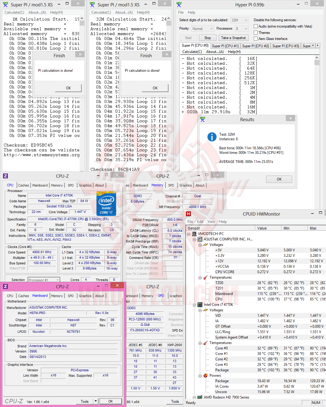 SuperPI 1M 1Thread, 32M 1Thread & 32M 8Threads