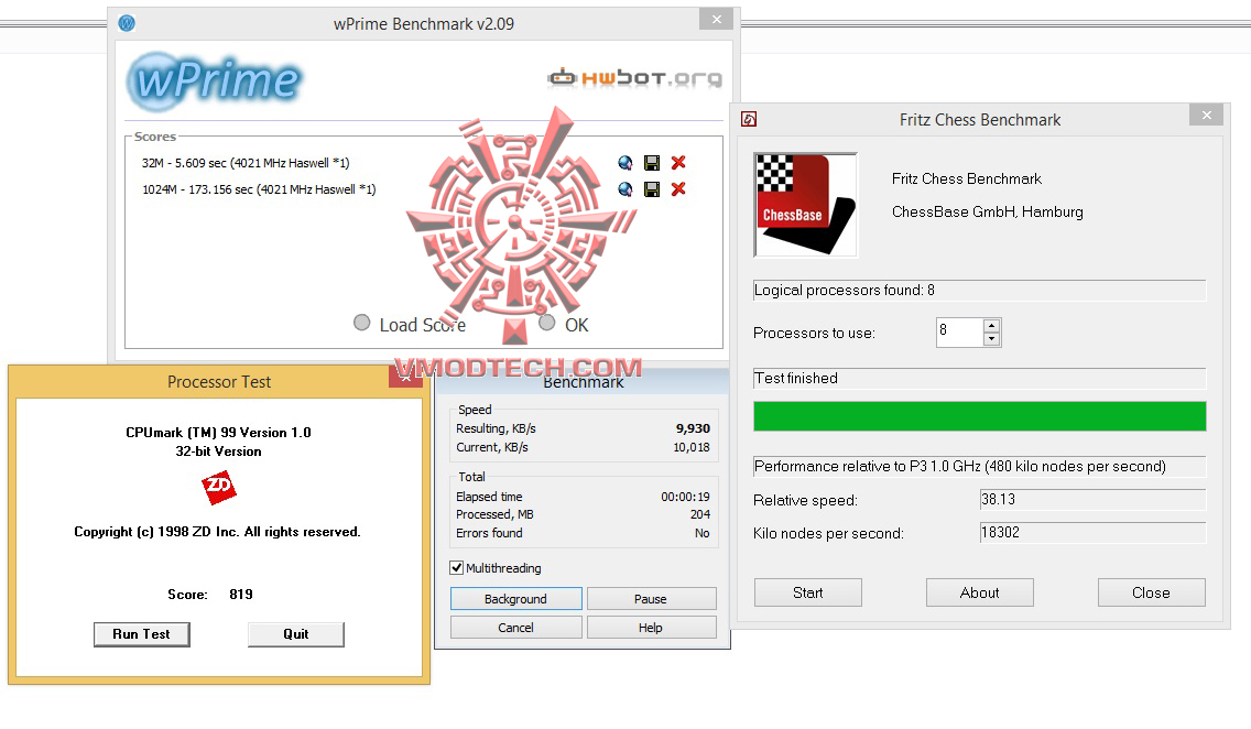 wPrime2.09 , CPUMark99Fritz Chess Benchmark & WINRAR 5.0