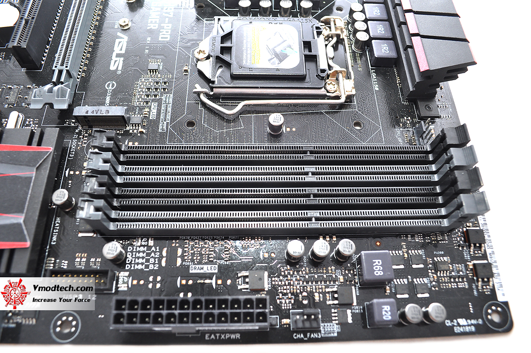 ตัวเมน บอร์ด PCB สีดำครับ เน้นโทนสีดำสลับสีแดงครับ ซึ่งก็จะเหมือนๆกับรุ่น GAMER ทั่วๆไปของ ASUS ในแบบเดียวกัน