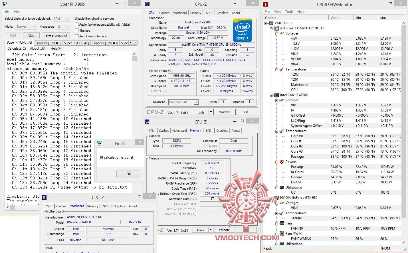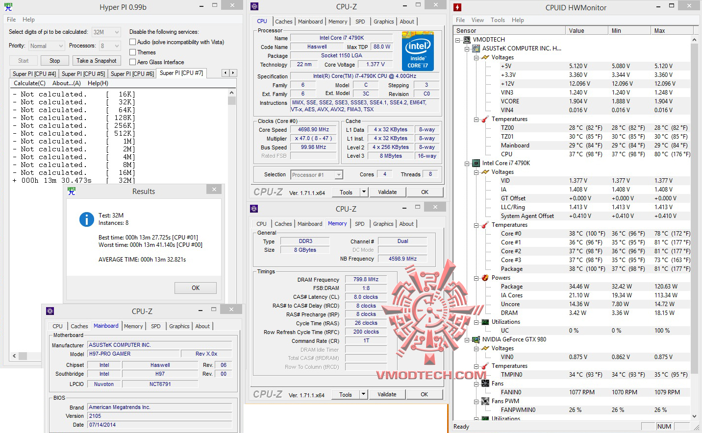 สำหรับชุด ทดสอบ SuperPI 1MB อยู่ที่ 7.659วินาที SuperPI 32MB จบไป 7นาที 02.937วินาที แรงในระดับมาตราฐาน Intel I7 4790K ในสถานะเดิมๆครับ , ส่วน HyperPI32MB ก็ผ่านหมดแรงแบบนิ่งๆ ใช้งานกันได้จริงอย่างมีเสถียรภาพครับ