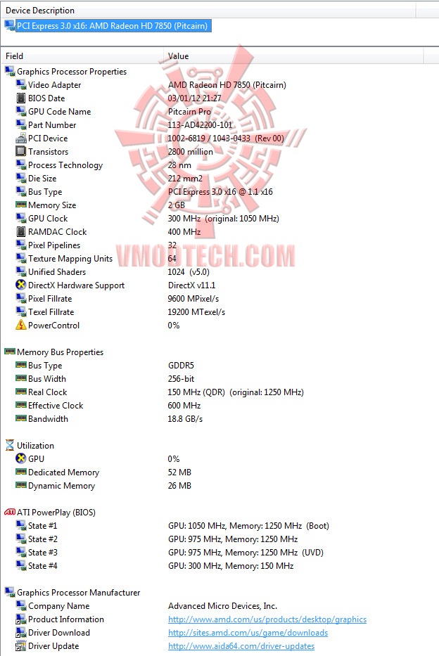 ASUS HD 7850 DirectCU II TOP Details from AIDA64