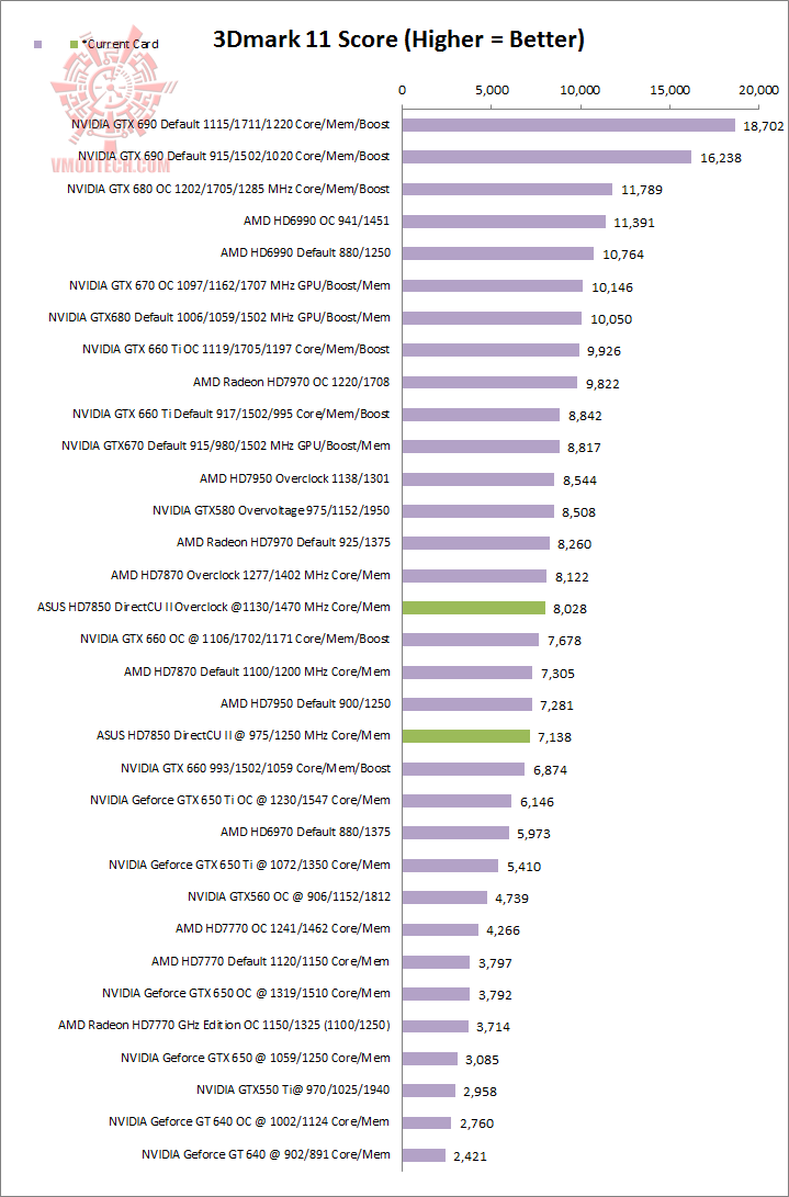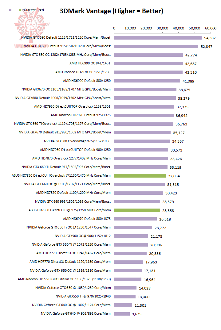 ผลการทดสอบ Vantage จาก ASUS HD 7850 DirectCU II TOP ได้คะแนนที่สองหมื่นแปดถึงสามหมื่นสอง แต่จะเห็นได้ถึงความแรงเมื่อทำการโอเวอร์คล๊อกครับ คะแนนพุ่งมากๆ