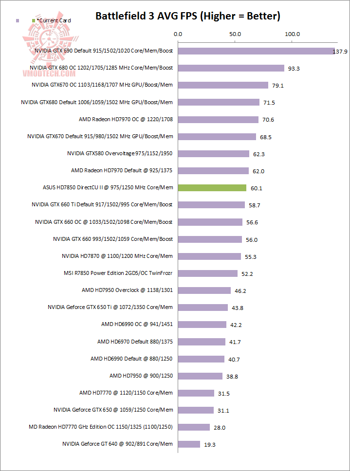 ไม่มีปัญหาครับสำหรับกราฟฟิกการ์ด ASUS HD 7850 DirectCU II TOP รุ่นกลางๆของ AMD ที่ผลิตโดย ASUS จุดเด่นก็คือ แรง ยิ่ง Overclock ก็ยิ่งแรงและคะแนนพุ่งมาก รวมถึงเงียบตามสไตล์ DirectCU II นอกจากนั้นยังสวยดุแบบที่หลายๆคนชอบกัน แบบว่าถ้าเสียบการ์ดนี้บน Mainboard ROG Series แล้วละก็ มันคือ system ในฝันของหลายๆคนเลย ในส่วนของการเล่นเกมส์นั้น ก็ไม่มีปัญหาครับเพราะว่าผมได้ทำการปรับเปลี่ยน Benchmark ในการเทสเปรียบเทียบเพื่อให้เห็นถึงความสามารถของการ์ดบนเกมส์ใหม่ๆอย่าง Sniper Elite V2 และ Farcry 3 ตรงนี้เป็นการยืนยันได้ครับว่า ASUS HD 7850 DirectCU II TOP นั้นยังรองรับการเล่นเกมส์ได้อีกปีสองปีนี้อย่างแน่นอน จัดได้เลยครับ…