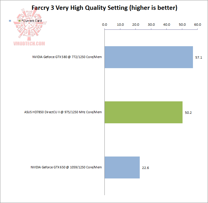 ไม่มีปัญหาครับ ASUS HD 7850 DirectCU II TOP สามารถรับมือ Farcry 2 ได้สบายๆด้วยการปรับ High Quality ที่เฟรมเรท 50 เฟรมต่อวินาที