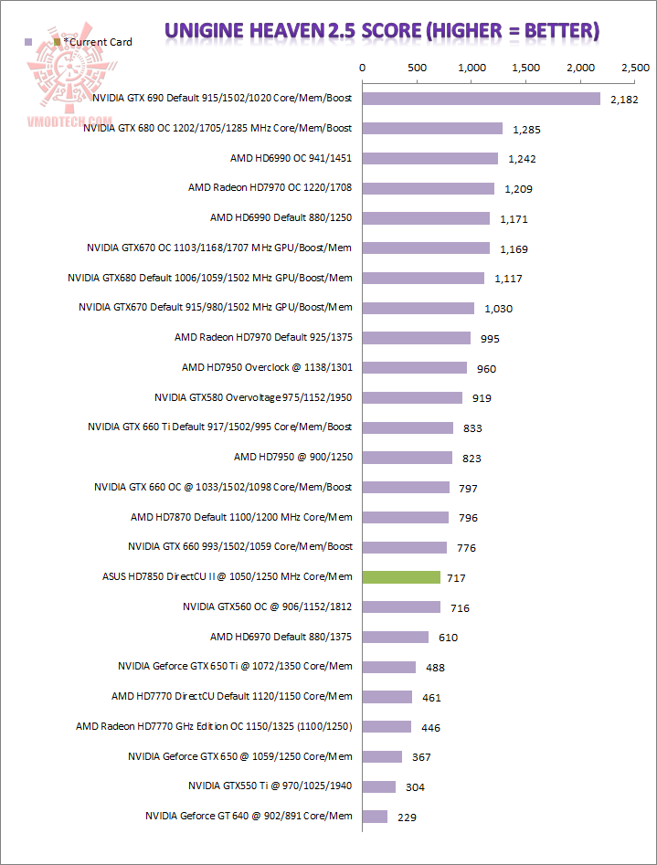 Heaven Benchmark นี่แสดงให้เห็นถึงความสามารถของ tessellation โหดๆ นั้น ASUS HD 7850 DirectCU II TOP ก็สามารถทำคะแนนได้ในเกณฑ์มาตรฐานครับ