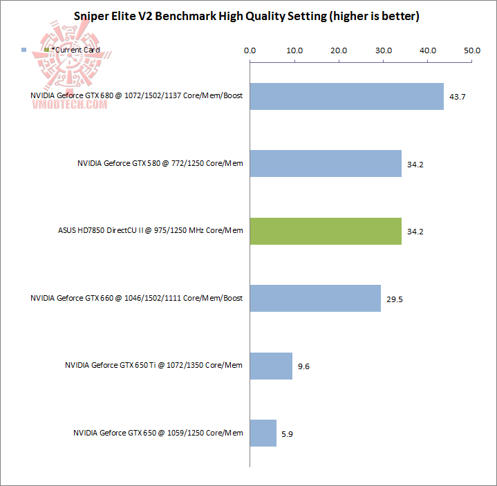 Sniper Elite 2 ผมทดลองมาให้หลายๆแบบให้ชมแต่ได้ทำกราฟเปรียบเทียบโดยยึดผลจากการเทสจาก High Quality ครับ ผลของการปรับ Quality นั้นเล่นได้ที่ 34.2 FPS เล่นได้สนุกและสวยงามอย่างแน่นอน