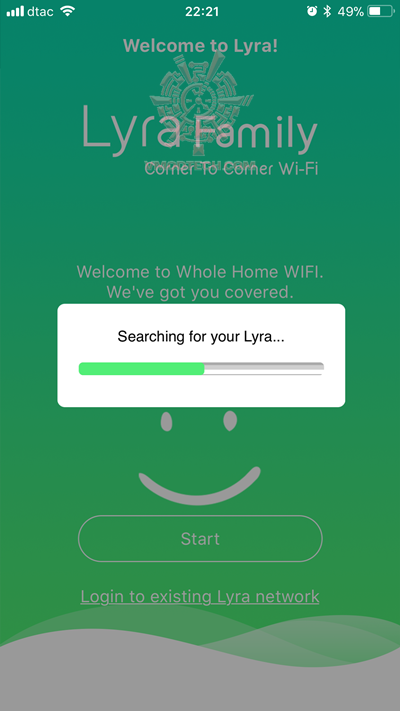เมื่อเราทำการโหลดมาแล้ว เราก็กด start ในการติดตั้งระบบได้เลย โดย app จะทำการค้นหา Lyra ในระบบแล้วทำการเซตอัพให้อัตโนมัติ