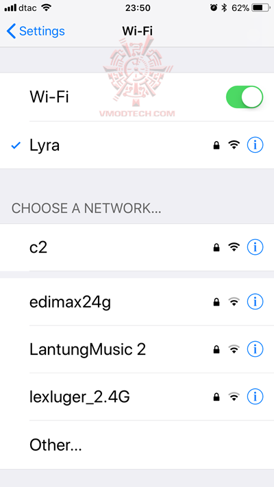 เมื่อทำการติดตั้งเสร็จแล้ว เราก็มาดูที่อุปกรณ์มือถือของเราครับ ให้เราทำการเชื่อมต่อกับเนตเวอร์คที่ชื่อ Lyra ได้เลย ทั้งระบบจะเชื่อมโยงกันเอง