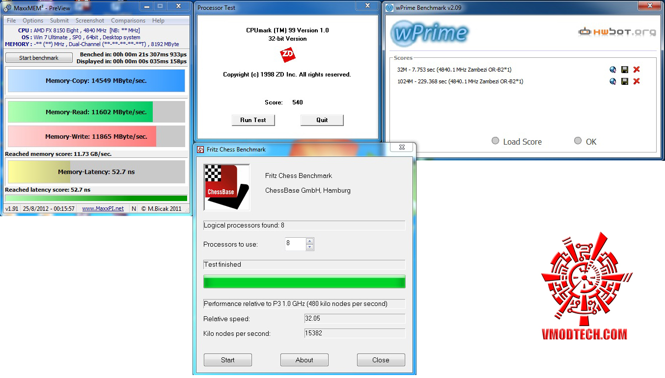 wPrime2.09 , CPUMark99 MaxxMem & Fritz Chess Benchmark