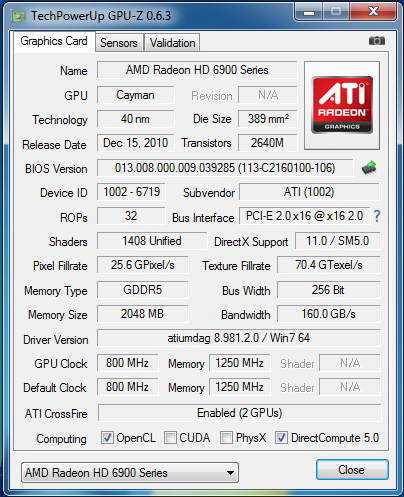 | .Graphic Card | . AMD HD6950 CrossfireX 2GPU |