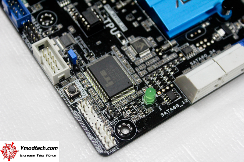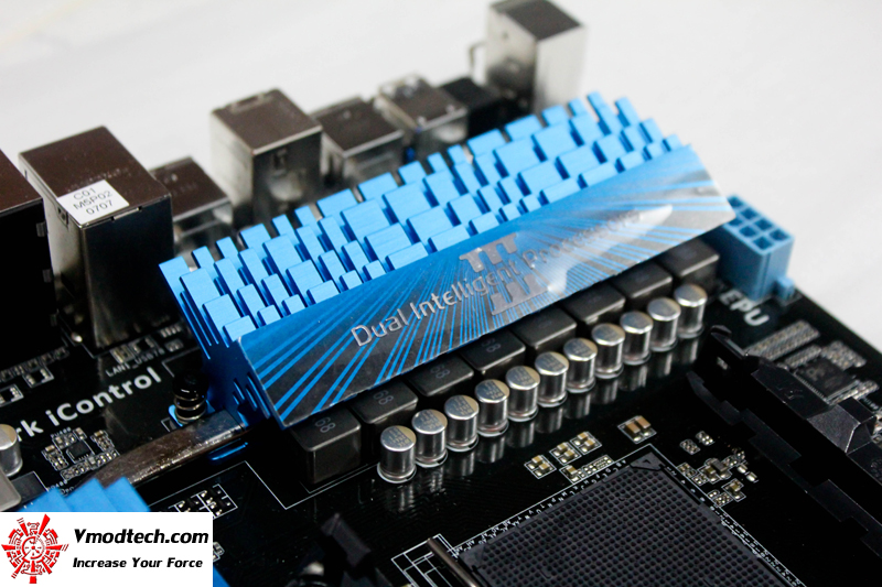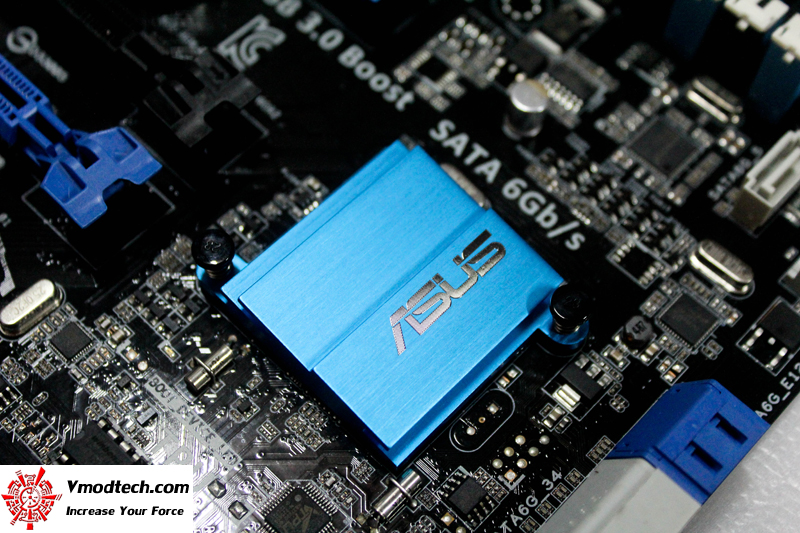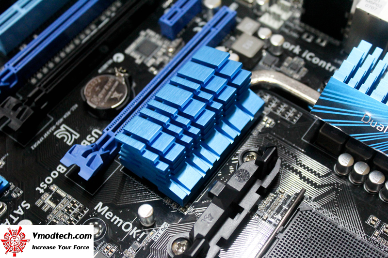ภายในตัวเมนบอร์ดมาในสีดำเข้มตัดกับฮีตซิงค์สีฟ้าสวยงาม