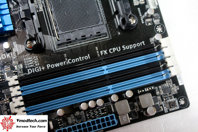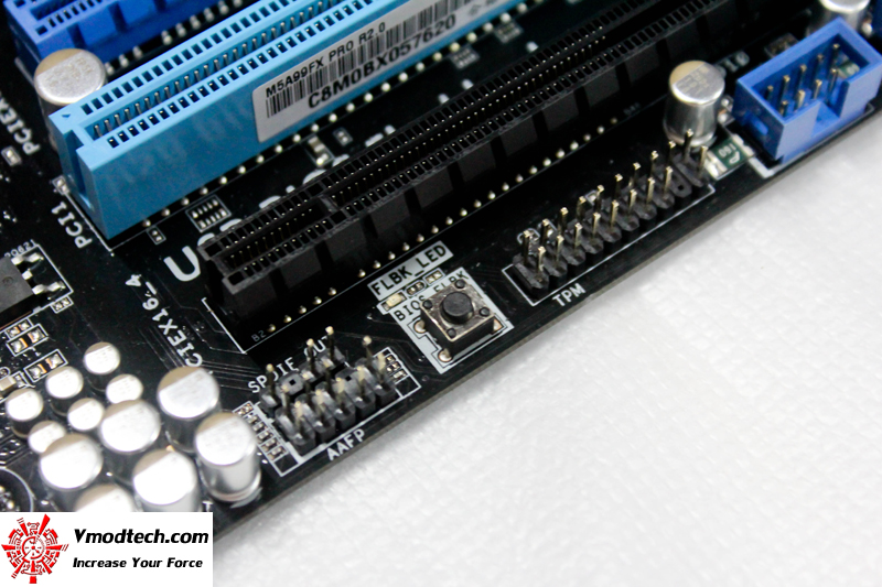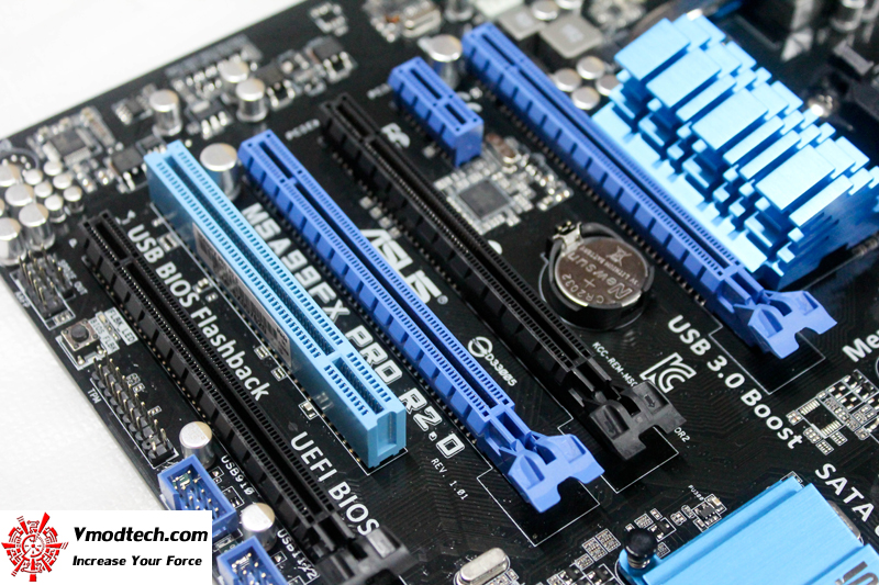 ชิปเซ็ต990FX ของเมนบอร์ด M5A99FX PRO R2.0 มาในฮีตซิงค์สีฟ้าสวยงามครับต่อท่อฮีตไปป์ระบายความร้อนไปยังฮีตซิงค์เฟสไฟด้วย
