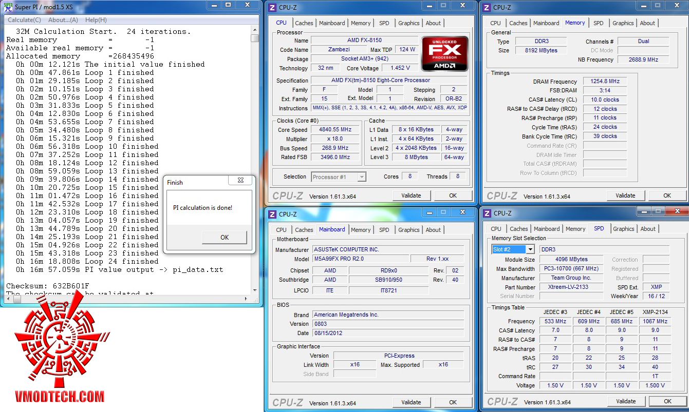 HyperPI 32MB 8Core 8Thread ผ่านไปครับเสถียรกันไประดับนึงที่บัสแรม2500นิดๆด้วยครับ เง้อ แรงจริงๆครับเมนบอร์ด ASUS M5A99FX PRO R2.0 ตัวนี้ ไม่ธรรมดาครับ