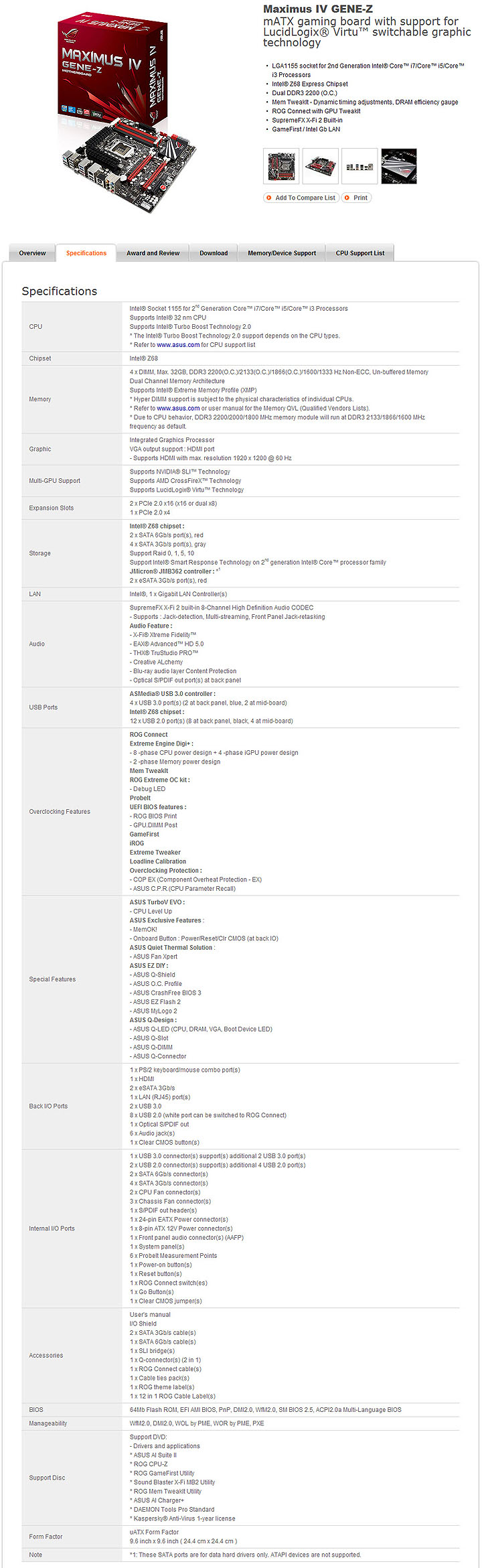 สวัสดีครับสมาชิก Vmodtech.com ทุกๆท่าน ช่วงวันหยุดสามวันติดปลายสัปดาห์กับวันเฉลิมพระชมพรรษาพระราชินี แม่ของแผ่นดิน กับวันสบายๆฝนตกพรำๆอีกเช่นเคยครับ วันนี้มีรีวิว Motherboard Socket LGA1155 Chipset Z68 ตัวเล็กๆแต่อัดแน่นด้วยคุณภาพจาก Series ROG จากค่าย ASUS รุ่น Maximus IV GENE-Z มาให้ได้ชมกันครับ สำหรับ Maximus IV GENE-Z นั้นอย่างที่บอกครับว่าเป็น Motherboard รุ่นซีรีย์ใหญ่จากค่าย ASUS บนบอร์ดอุดมไปด้วยความสวยงามด้วยสีดำตัดแดงแบบดุดันเหมือนอย่างรุ่นพี่ Maximus IV Extreme เลย แต่ย่อขนาดลงมานี่ก็ทำให้หลายๆท่านที่อยากได้คอมพิวเตอร์เล็กๆแต่แฝงประสิทธิภาพอย่างล้นเหลือมองกันตาเป็นมันวาวเลยนะครับ เช่นเคย รับชมรายละเอียดที่คัดลอกจากหน้าเว็บของ ASUS กันก่อนครับ