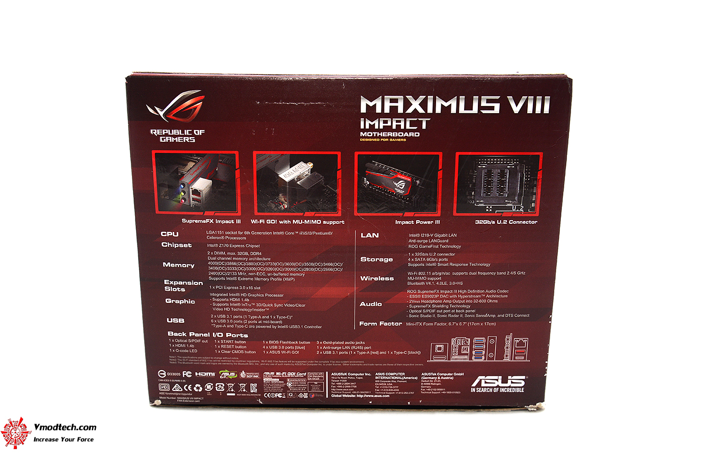 มากันในกล่องสีแดงครับ มีโลโก้ ASUS MAXIMUS VIII IMPACT พร้อมบอกรายละเอียดด้านหน้ากล่อง โดยดีไซน์ก็เหมือนกับในรุ่นก่อนครับ