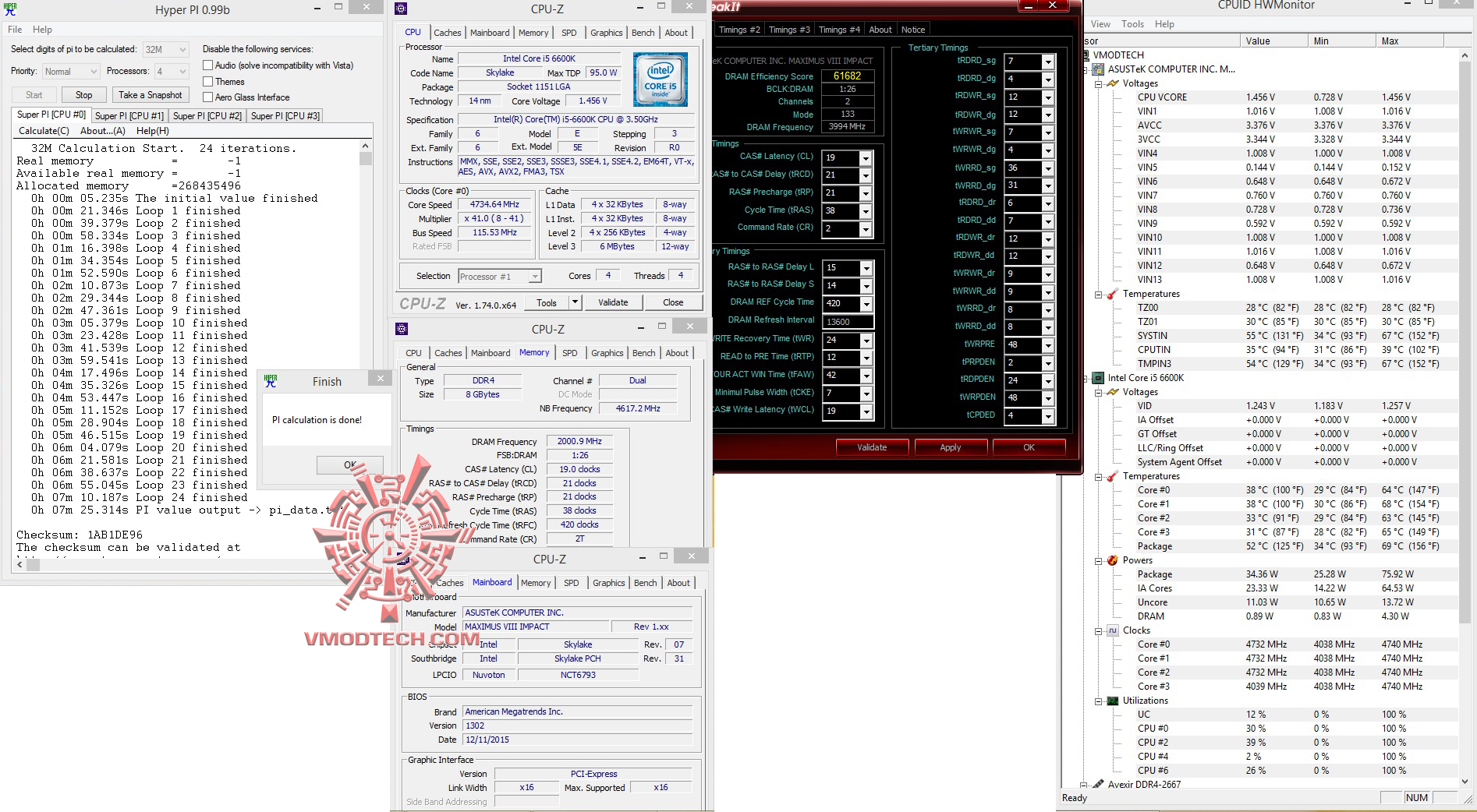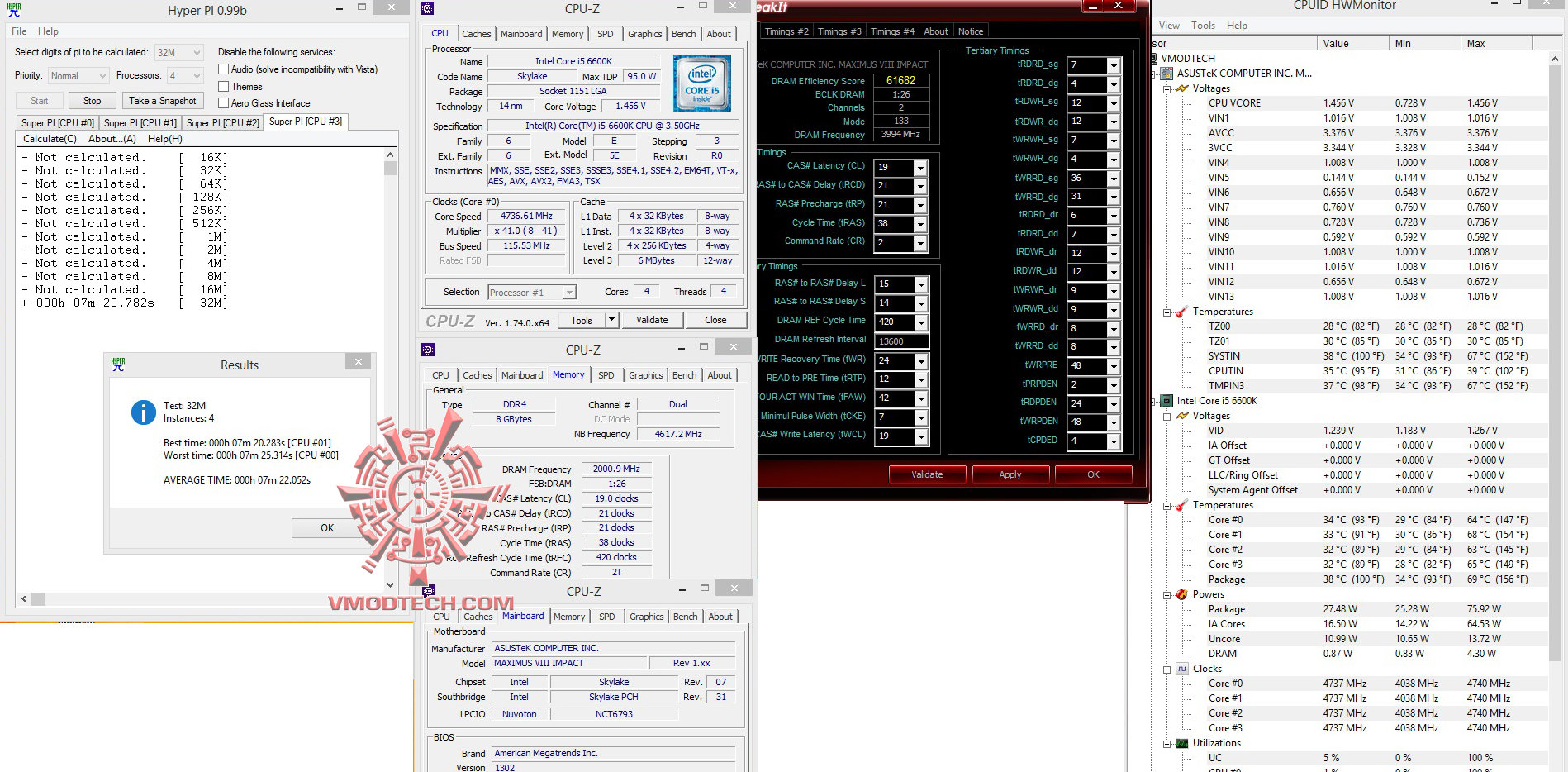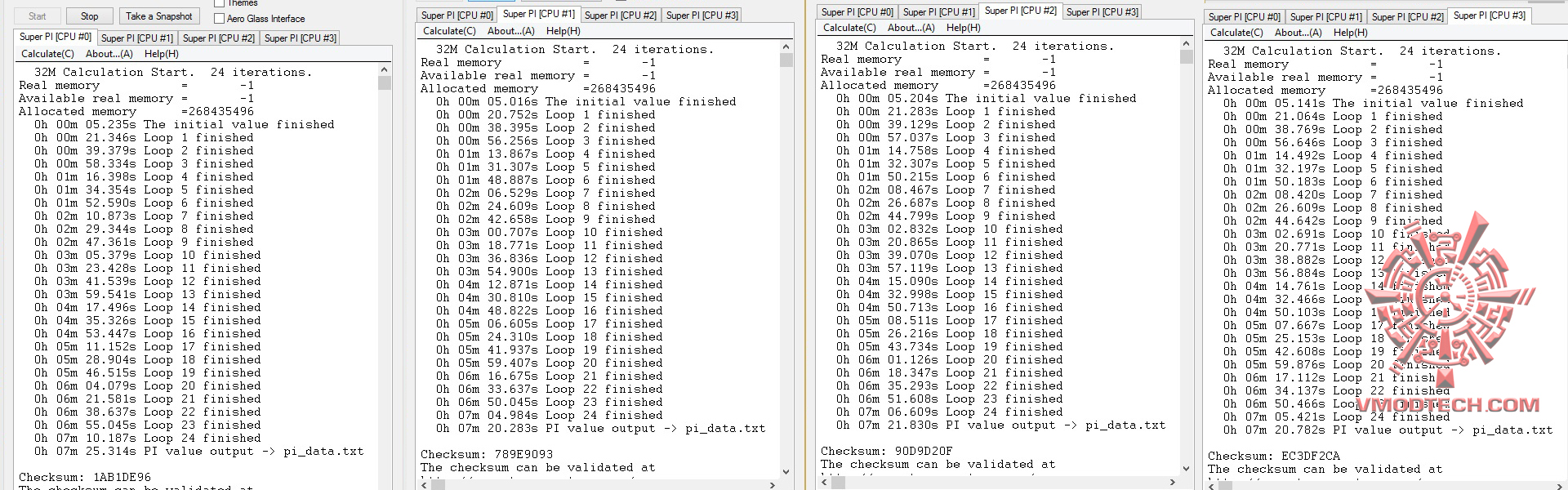 สำหรับชุด ทดสอบ SuperPI1MB จบไปที่ 7.704วินาที , 32MB จบไป 6นาที 42.321วินาที ส่วน HyperPI 32MB ก็ผ่านหมด เฉลี่ยราวๆ 7นาทีกว่าๆ ทั้ง 4เทรด แรงจัดใช้งานได้จริงในความเร็วบัสแรม 4000Mhz ที่ความเร็วซีพียู 4.7Ghz ครับ สุดๆจริงๆ