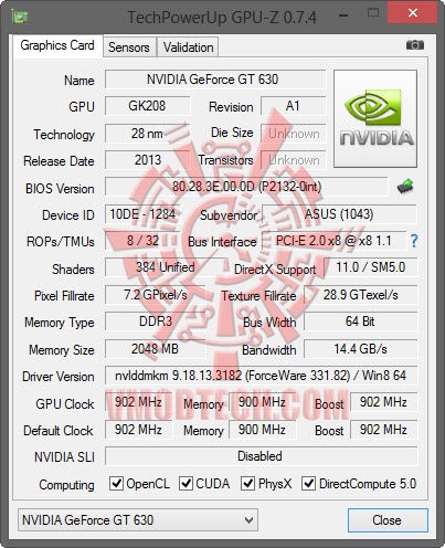 ความเร็วมาตรฐานของนั้นคือ ASUS New GeForce GT 630 902/900/902 MHz Core/Mem/Shader