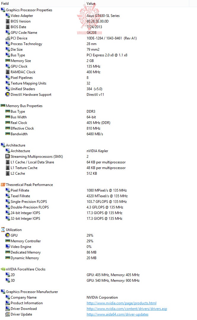 ความเร็วของ ASUS GeForce GT 630 @ 810/900/1620 MHz Core/Mem/Shader