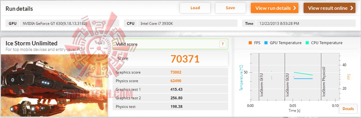 ความแรงของการ์ดรุ่นปรับปรุงอย่าง ASUS New GeForce GT 630 นั้นโชว์ความแรงบน Vantage ค่อนข้างมากเลยครับ ตัวผมเองยังแปลกใจว่า Cuda 384 หน่วยนั้นสามารถปั่นคะแนนได้มากขนาดนี้เลยเหรอเนี่ย