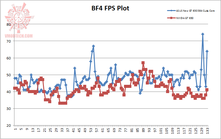 คะแนน FB4 นี่ประทับใจเลยครับกับเฟรมเรททั้งโดยเฉลี่ยและเฟรมเรทที่พร๊อทมาก ที่การ์ด ASUS New GeForce GT 630 โชว์ความแรงกว่าการ์ดแบบปกติมากถึงเกือบๆ 6 เฟรมต่อวินาที