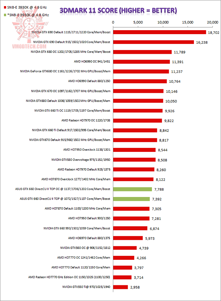 ความแรงบนเทคโนโลยี DirectX 11 นั้นแรงใช้ได้ครับที่ประมาณเจ็ดพันคะแนน แถมโอเวอร์คล๊อกไปแล้วคะแนนพุ่งดีจริงๆ