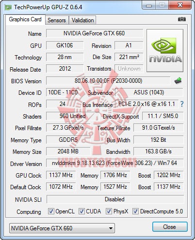 ASUS GeForce GTX 660 DirectCU II TOP from GPUZ