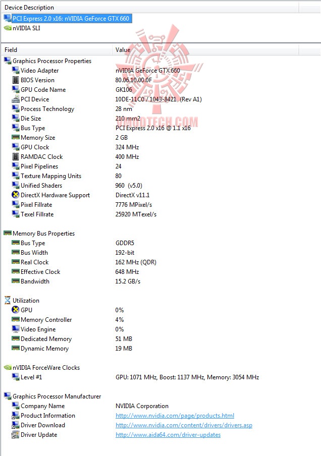 ASUS GeForce GTX 660 DirectCU II TOP Detail from AIDA 64