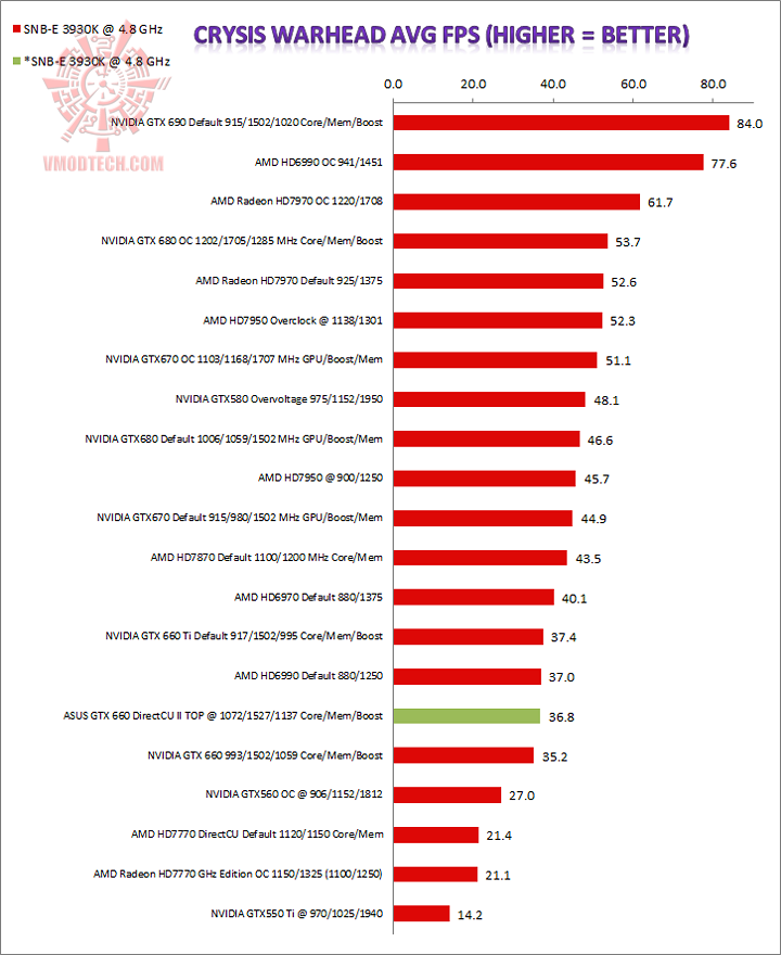 Crysis Warhead นี่เป็น DX10 ซึ่ง ASUS GeForce GTX 660 DirectCU II TOP นั้นเล่นได้ลื่นไม่มีสะดุดให้กวนใจครับ