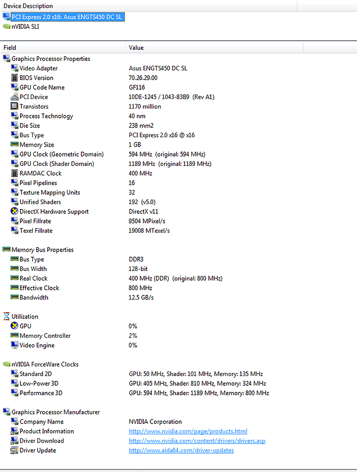 ASUS GTS 450 DirectCU Silent from GPUZ