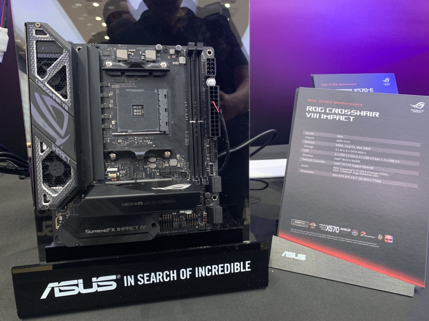 มาถึงมาเธอร์บอร์ดซีรีย์ Crosshair VIII X570 ครับ โดยวันนี้เรามีมาให้ได้ชมกันสามรุ่นคือ ตัวด้านบน Crosshair VIII Impact ซึ่งเห็นดีไซน์แบบนี้แล้วคนที่ชอบเล่นแรมคงจะรักมันครับ โดยตัว Impact นั้นมาบนขนาด mini-dtx ซึ่งถือว่าเป็นขนาดใหม่ที่เรายังไม่ได้เห็นมาก่อนด้วยครับ อันนี้อ้างจากแผ่นป้ายประกาศของเค้าเองนะครับ เดี๋ยวเราคงได้เห็นต้วจริงกันในไม่ช้านี้