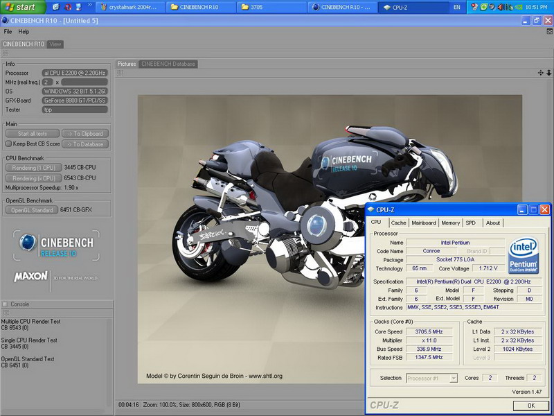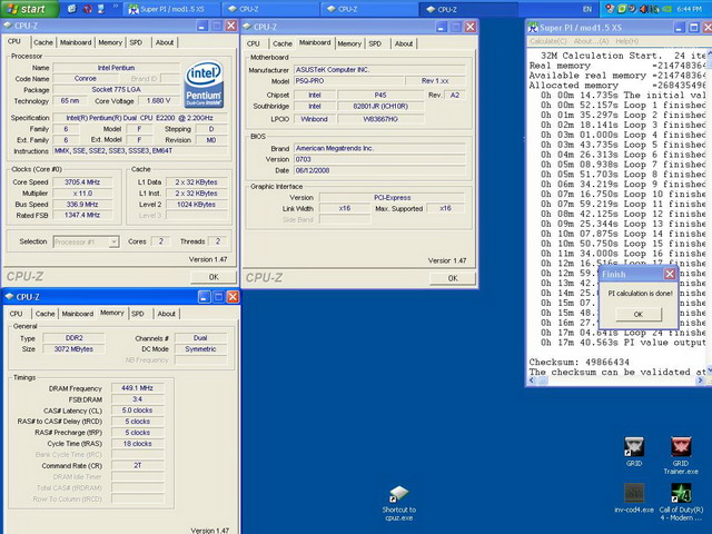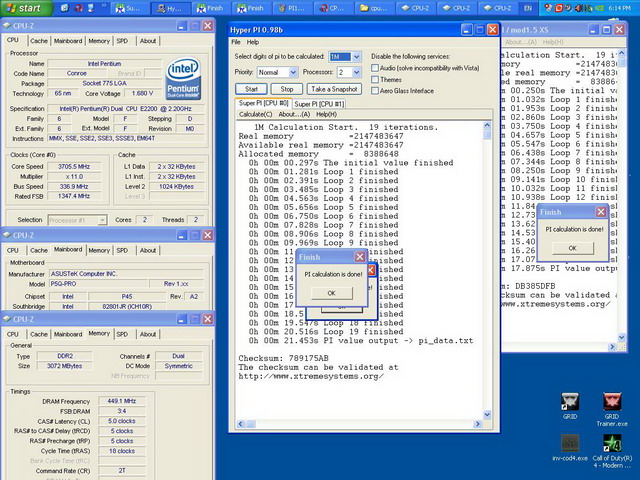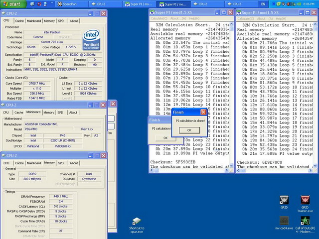 ตามมาด้วย 32 M ทั้งหนึ่งและสองหัว ตอนที่เทสสองหัวนี่ ผมต้องสลับ Jumper ไปใช้ที่ Max 2.1 V สำหรับไฟที่จ่ายเข้า cpu โดยที่จ่ายไฟจริงจาก Bios คือ 1.75 V ครับ