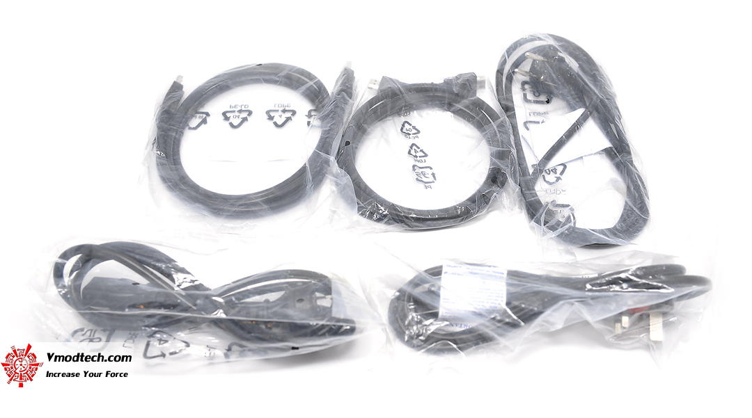 สายที่ให้มาในกล่องนั้นก็รองรับการขายในหลากหลายภูมิภาคครับ โดยได้เตรียมสาย AC ที่มีหัวต่อแบบต่างๆมาสามชนิด สาย DisplayPort หนึ่งเส้นและสาย HDMI อีกหนึ่งเส้น พร้อมใช้งาน