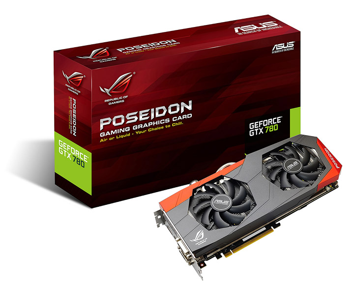 ROG Poseidon GTX 780 Platinum เป็นกราฟิกการ์ดรุ่นใหม่มาพร้อมหน่วยประมวลผลกราฟฟิกส์ จาก NVIDIA รุ่นล่าสุด GeForce® GTX 780 ที่มาพร้อมชุดระบายความร้อนใหม่ล่าสุด DirectCU H2O แบบไฮบริดจ์ที่ให้ประสิทธิภาพทำความเย็นกับตัวการ์ดถึงขีดสุดด้วยการผสานพลังทั้งระบบน้ำและระบบลม ROG Poseidon GTX 780 จึงมีอุณหภูมิขณะใช้งานต่ำกว่ารุ่นมาตรฐานทั่วไปถึง 24 องศา อีกทั้งยังระบายความร้อนได้ดีกว่าถึง 140% และได้ประสิทธิภาพการเล่นเกมส์ที่ลื่นกว่าถึง 12% บนเกมส์ Assassin’s Creed® IV: Black FlagTM และ BattleField 4TM