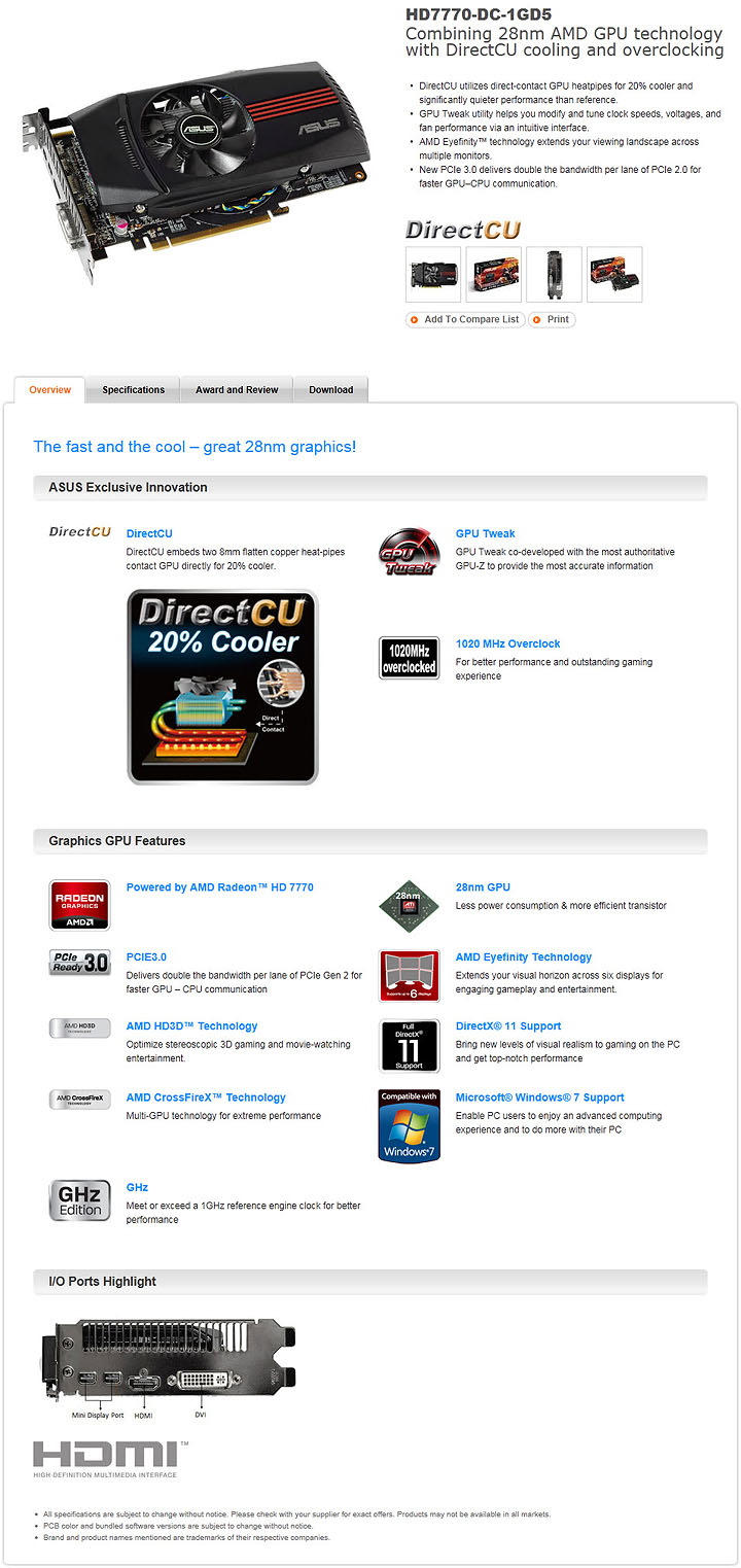 สวัสดีครับ วันนี้ขอเปลี่ยนบรรยากาศมาแนะนำกราฟฟิกการ์ดรุ่นกลางค่อนไปทางเล็กกันบ้างนะครับหลังจากที่ทาง Vmodtech เราได้นำเอาการเปิดตัวการ์ดรุ่นใหญ่มาให้ได้ชมกันติดๆกันหลายใบแล้ว สำหรับวันนี้จะเป็นกราฟฟิกการ์ดจากค่าย ASUS รุ่น HD7770 DirectCU TOP ซึ่งก็แน่นอนว่ามันมาพร้อมกับ Heatsink ที่เป็นเอกลักษณ์ของ ASUS อย่าง DirectCU นั่นเอง จะมีดีอย่างไรนั้นมาติดตามพร้อมๆกันเลย
